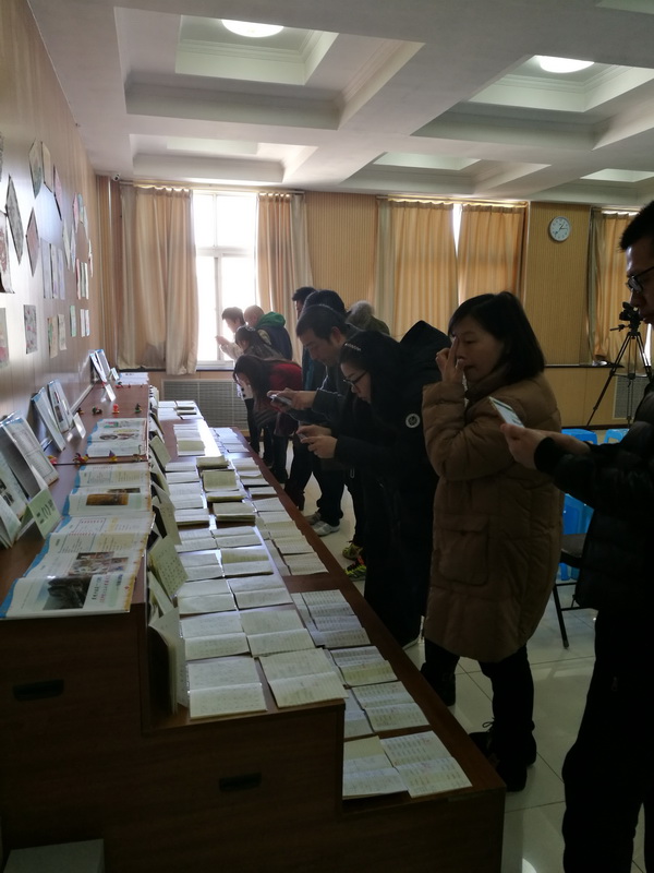 家长们观看孩子们的学习成果展