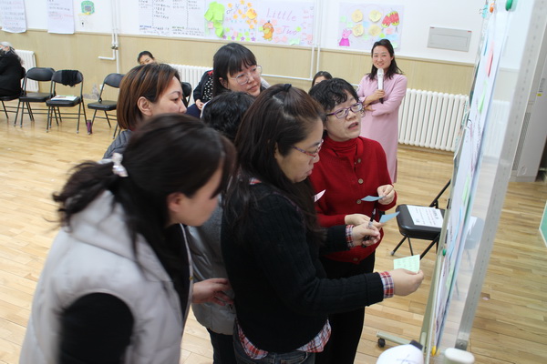 此次培训活动改变了以往的培训形式,开展体验式活动:头脑风暴找到工作中面临的挑战和期待的品格和技能;游戏活动体会到言行一致的重要性;情景表演感悟处理问题的不同效果;相互沟通学习正面管教方法;正面管教之屋了解相互尊重的关系;错误目的表探索行为背后的信念;教师互助拓展方法解决问题;在和善与坚定并行中,逐步运用核心技能,转变教学方法,改变沟通方式,培养有责任、相互尊重的、智慧的社会公民。